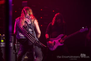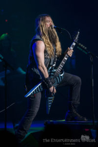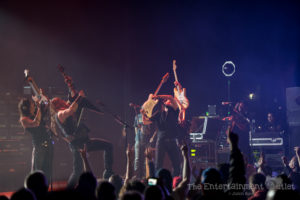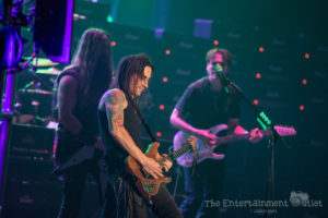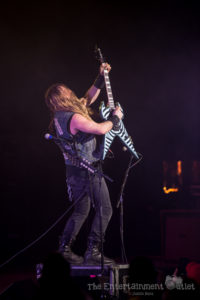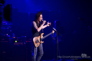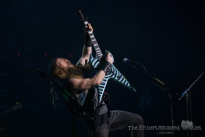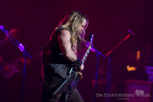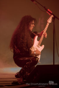 From the second Yngwie hit the stage, the show changed dramatically, and I felt like we’d been brought back to the 80’s. The more modern lighting used during the rest of the show changed to a wash of red and orange lights, and the stage filled with fog, and of course Yngwie still rocks the hair and leather pants from the 80’s.There’s no doubt Yngwie is a great player. Despite his talent, I found his set to be the least entertaining of the night. To me, all of his songs seemed to run together into one big guitar solo. At times he seemed to be playing with a backing track rather than the live band that accompanied the rest of the night, which was disappointing as well. A fan extremely familiar with his material may have enjoyed it more than I did.