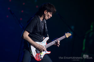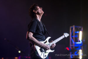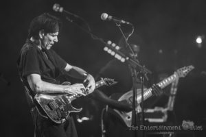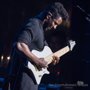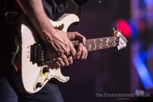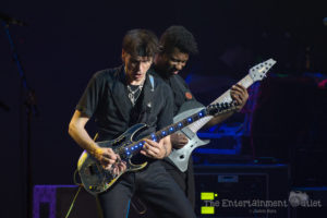 As the lights dimmed, the instantly recognizable keyboard riff from the intro of Boston’s “Foreplay” began, and all five guitar players made their way to the stage. What is normally just a two minute intro to the song “Long Time” was extended significantly as the five guitar players took turns taking solos. Making a great song even more entertaining was the perfect start to the show. As they reached the end, Vai introduced the crowd to Tosin Abasi, and the rest of the players left the stage.